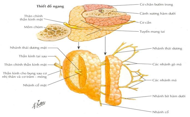 Sơ đồ dây thần kinh mặt đi trong tuyến mang tai