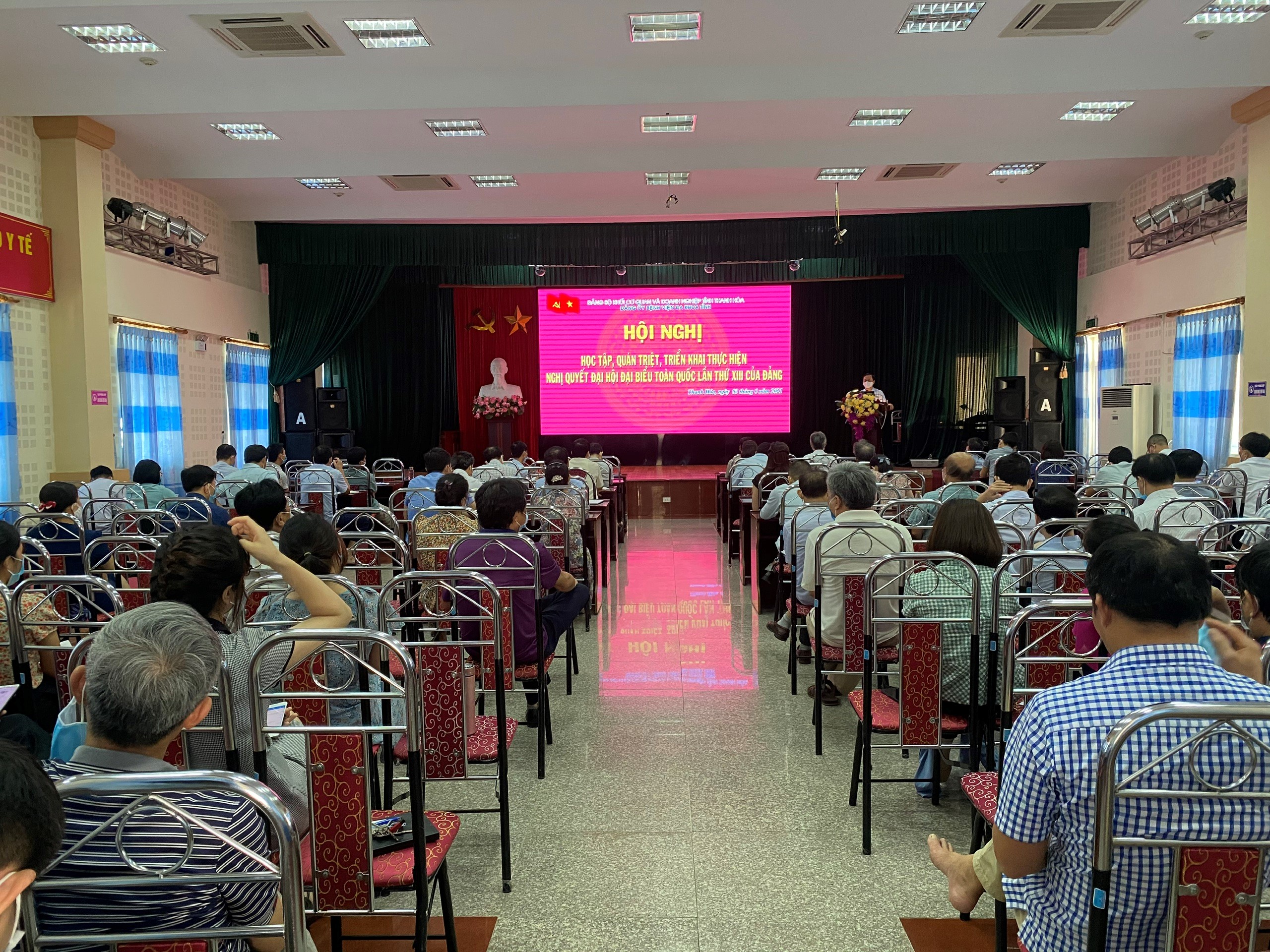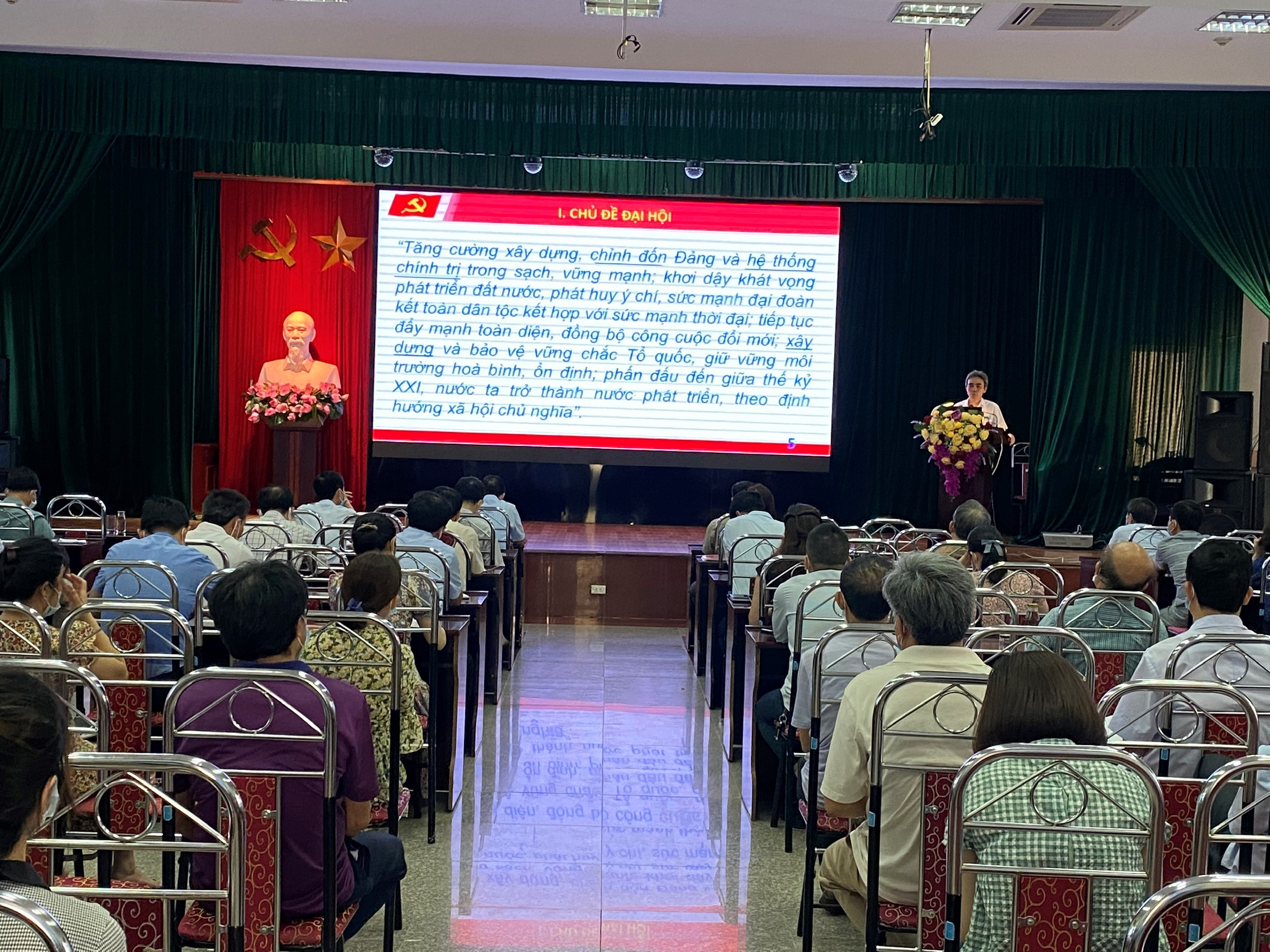 Hội nghị được nghe đồng chí Lê Hải Quân – Ủy viên Ban Thường vụ, Trưởng ban Tuyên giáo Đảng ủy Khối Cơ quan và Doanh nghiệp tỉnh Thanh Hóa truyền đạt những điểm chính, điểm mới trong các văn kiện Đại hội XIII của Đảng. Đồng chí Lê Hải Quân nêu rõ Đại hội đại biểu toàn quốc lần thứ XIII của Đảng là sự kiện chính trị trọng đại của toàn Đảng, toàn dân và toàn quân ta diễn ra ngay vào những ngày đầu năm 2021. Đại hội có nhiệm vụ rất quan trọng, đó là:: Kiểm điểm việc thực hiện Nghị quyết Đại hội XII của Đảng, gắn với việc đánh giá 35 năm tiến hành công cuộc đổi mới, 30 năm thực hiện Cương lĩnh năm 1991, 10 năm thực hiện Cương lĩnh (bổ sung, phát triển) năm 2011, Chiến lược phát triển kinh tế-xã hội 2011-2020.