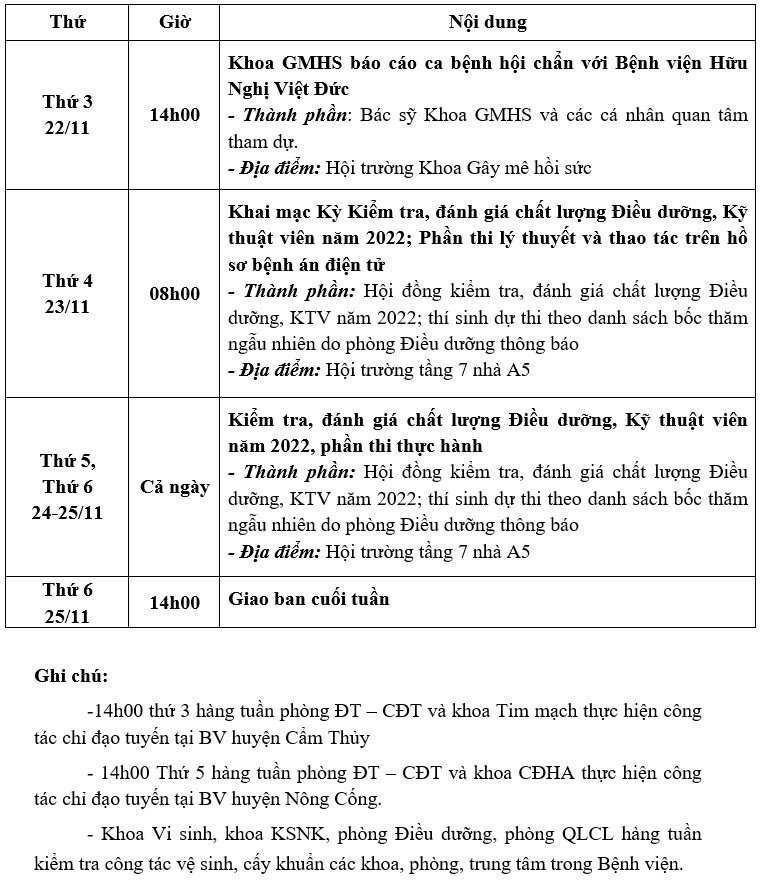 Lịch công tác tuần từ ngày 21/11/2022 đến ngày 25/11/2022 Tài liệu đi kèm:Lịch công tác tuần (File word)