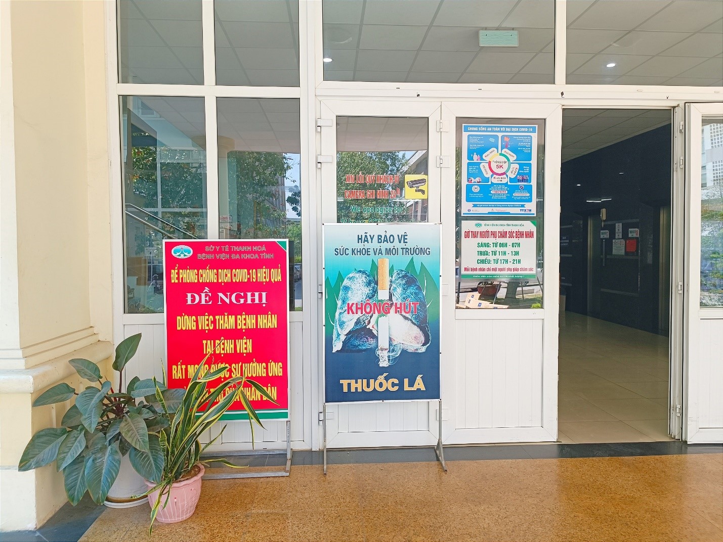 Cùng với đó, bệnh viện còn bố trí lắp đặt các biển cảnh báo, cấm hút thuốc ở các vị trí đông người qua lại; dán các hình ảnh tác hại của thuốc lá trên đường đi, hành lang của các khoa, phòng, trung tâm.